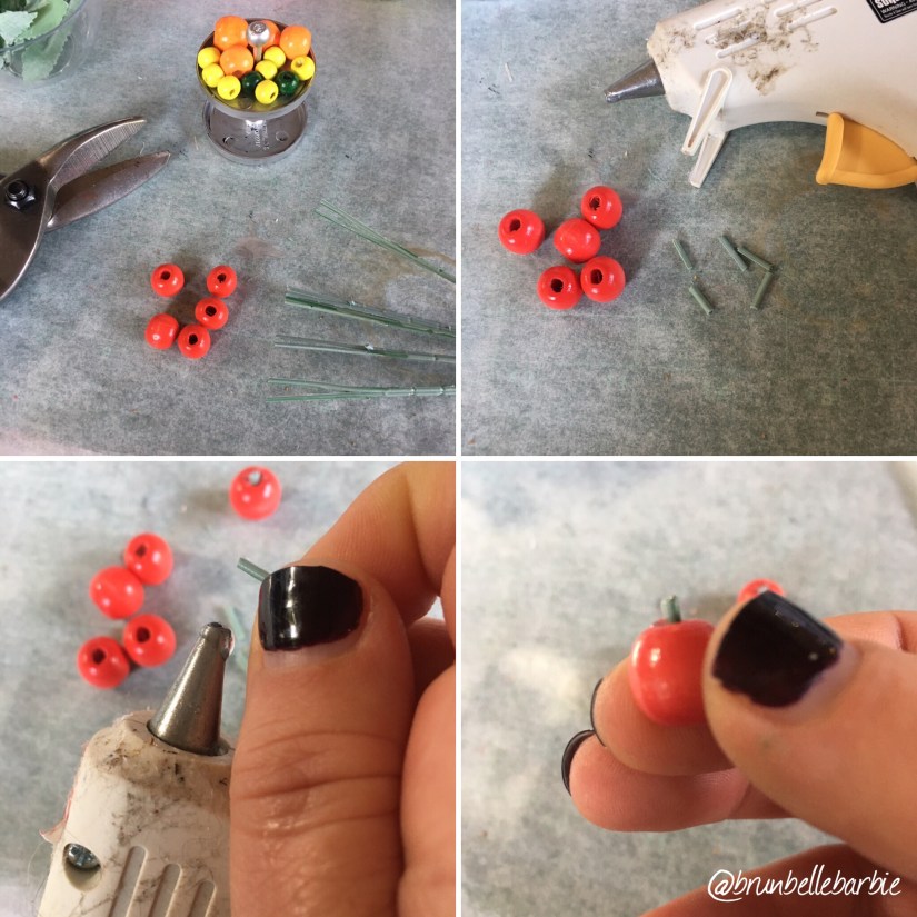I played around with keeping the apples red and natural, but they were just too bright, so I painted them white to seem like chalkware apples.